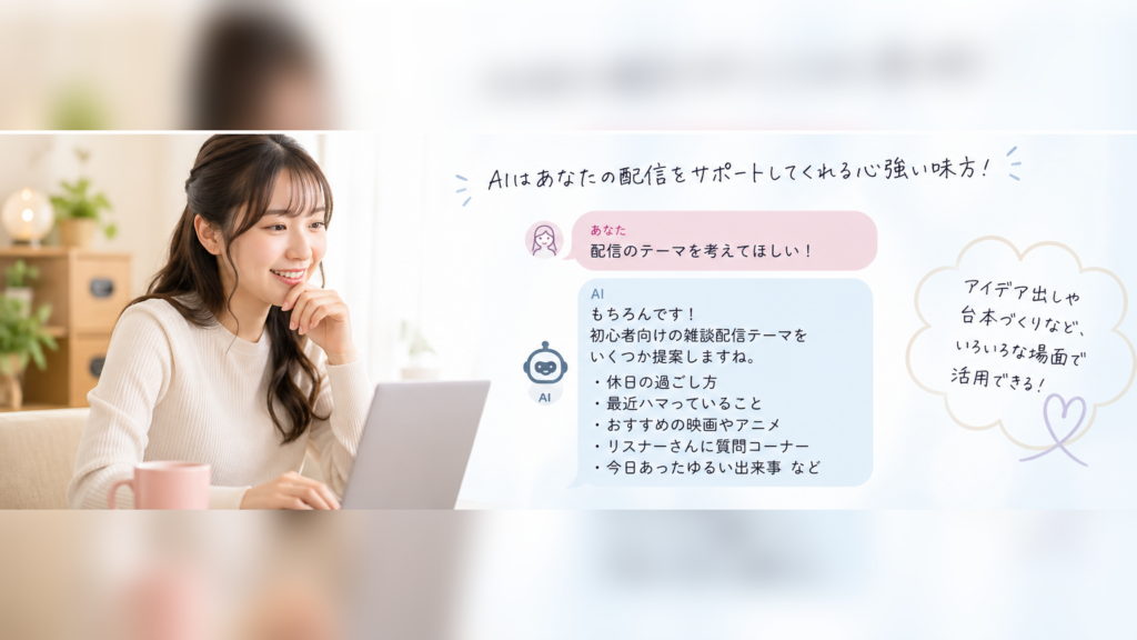 こうしたポイントを押さえておけば、AIは配信活動を支えてくれる心強い味方になります。